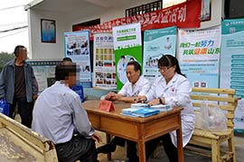 经过三个多小时的车程,我们终于赶到了青杨峪村,虽然一路上颠簸风尘,但是依旧磨灭不了我们对于义诊的热情。一下车,我们便迅速的将展架和宣传资料安置好,村支书也打开喇叭喊道“济南神康医院的专家到了,有头疼、失眠、抑郁、焦虑的乡亲赶紧来村委会”。不一会,我们的问诊台前便挤满了前来咨询的病人和家属。